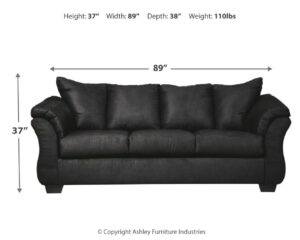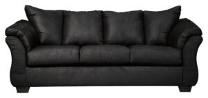 Talk about fine lines and great curves. That’s the beauty of this standout sofa made to suit your appreciation for clean, contemporary style. A striking flared frame, comfy pillow top armrests and an ultra-soft upholstery that holds up to everyday living complete this fashion statement.